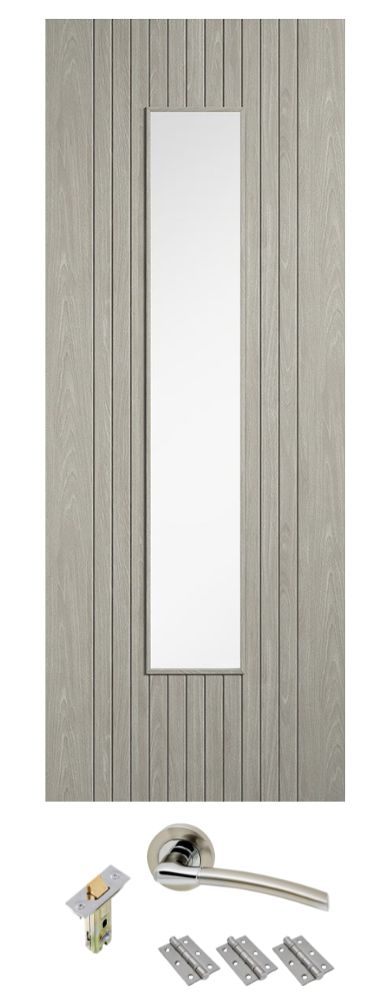 Internal Light Grey Laminated Sydney Glazed Door Clear Glass with handle pack